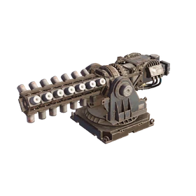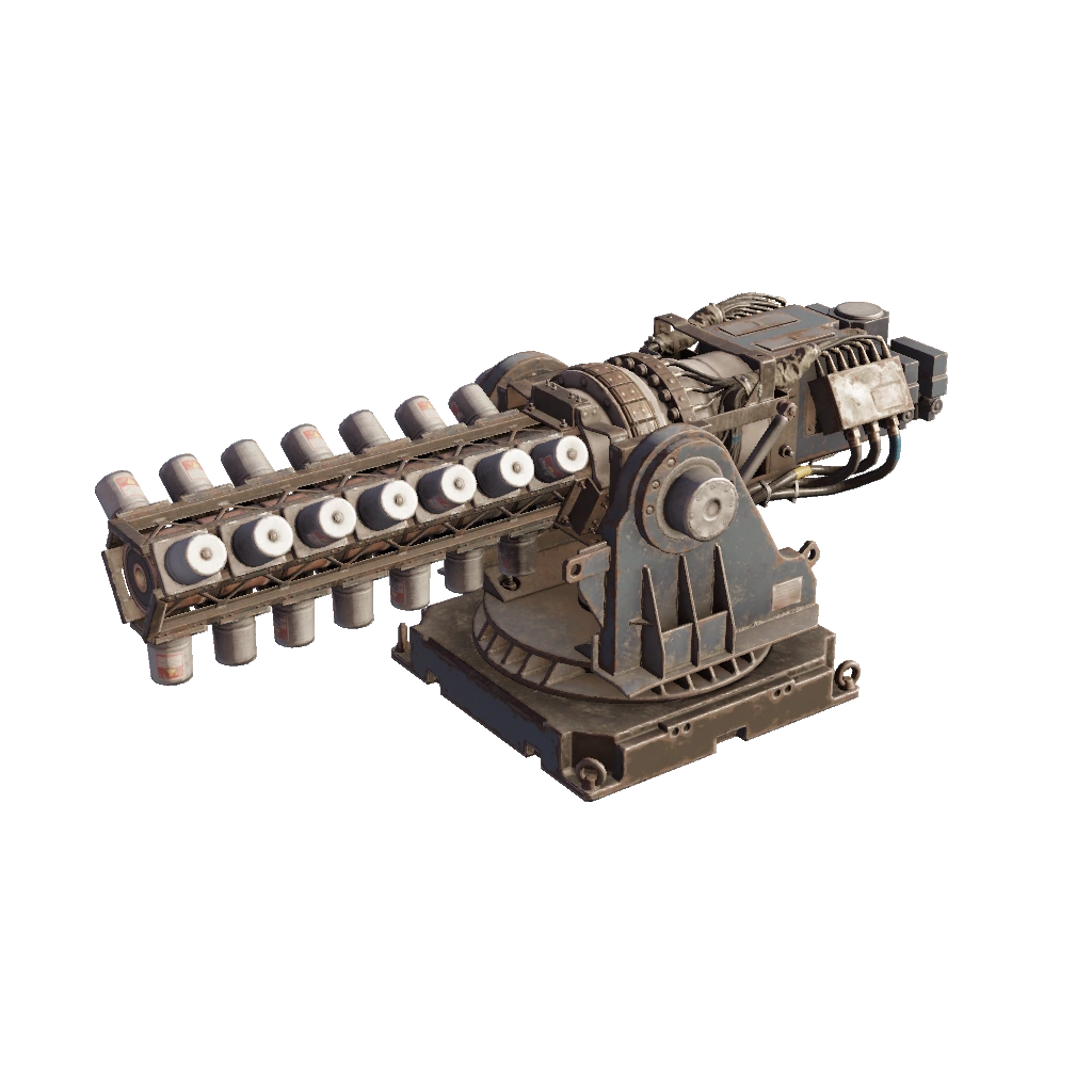 - Стреляет очередями из снарядов, которые летят по прямой траектории.